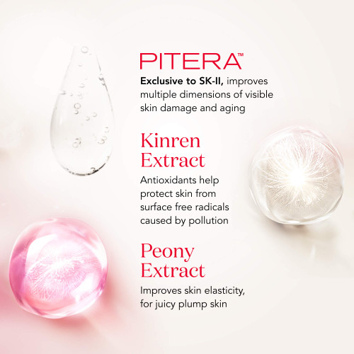 PITERA™ – SK-II’s proprietary, natural bio-ingredient derived from fermentation. It improves multiple dimensions of visible skin damage and aging.
